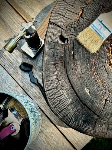 Preparation is key to achieving the best results. We'll start by leveling the stump, then smooth the surface using a planer and sandpaper. Once the surface is smooth, we'll use a torch to burn it, creating a stamp-like effect for the print.